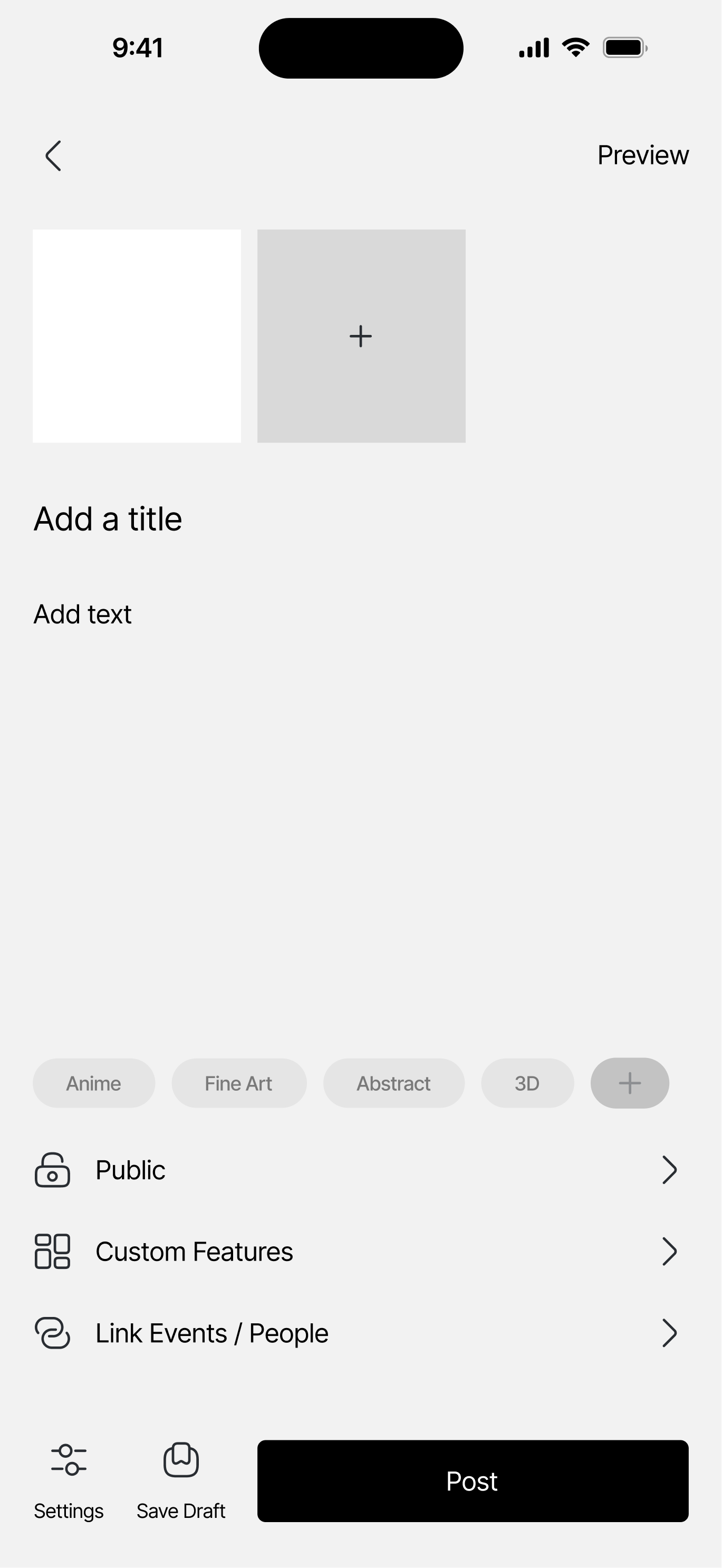 UI Design: The users thought the minimalistic look of the UI feels too corporate, lacking personality for an app that is targeted towards artists. They mentioned the app would benefit from personalization and customization options, allowing each user to freely express their artistic style through the UI. This concept is similar to Discord for its profile customizability.