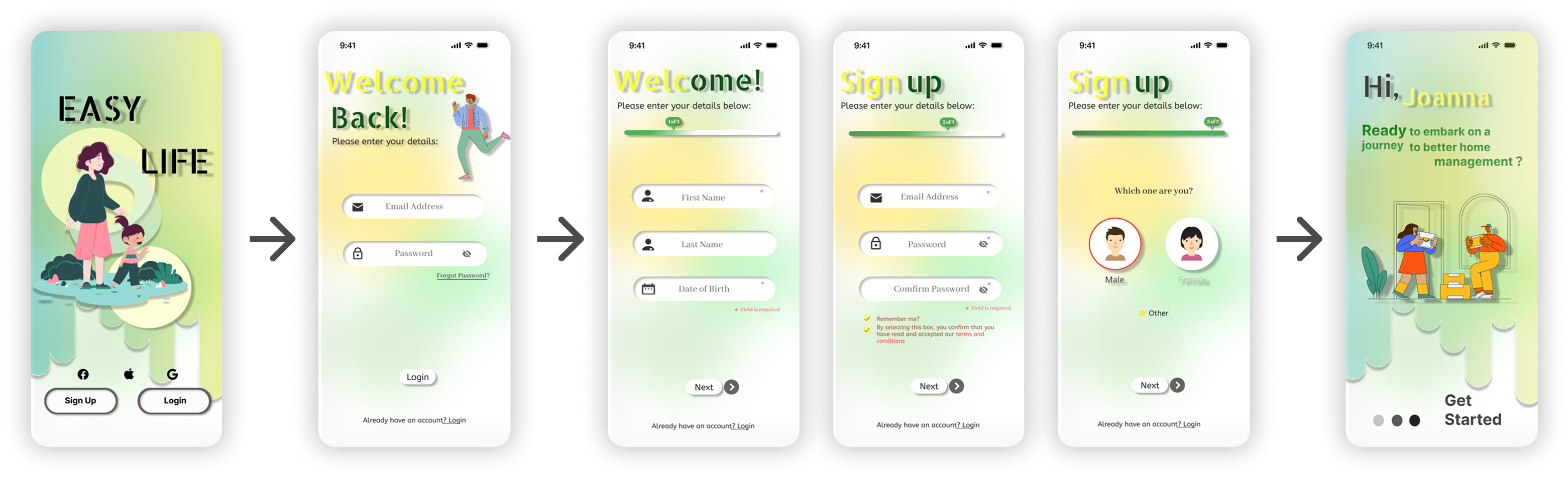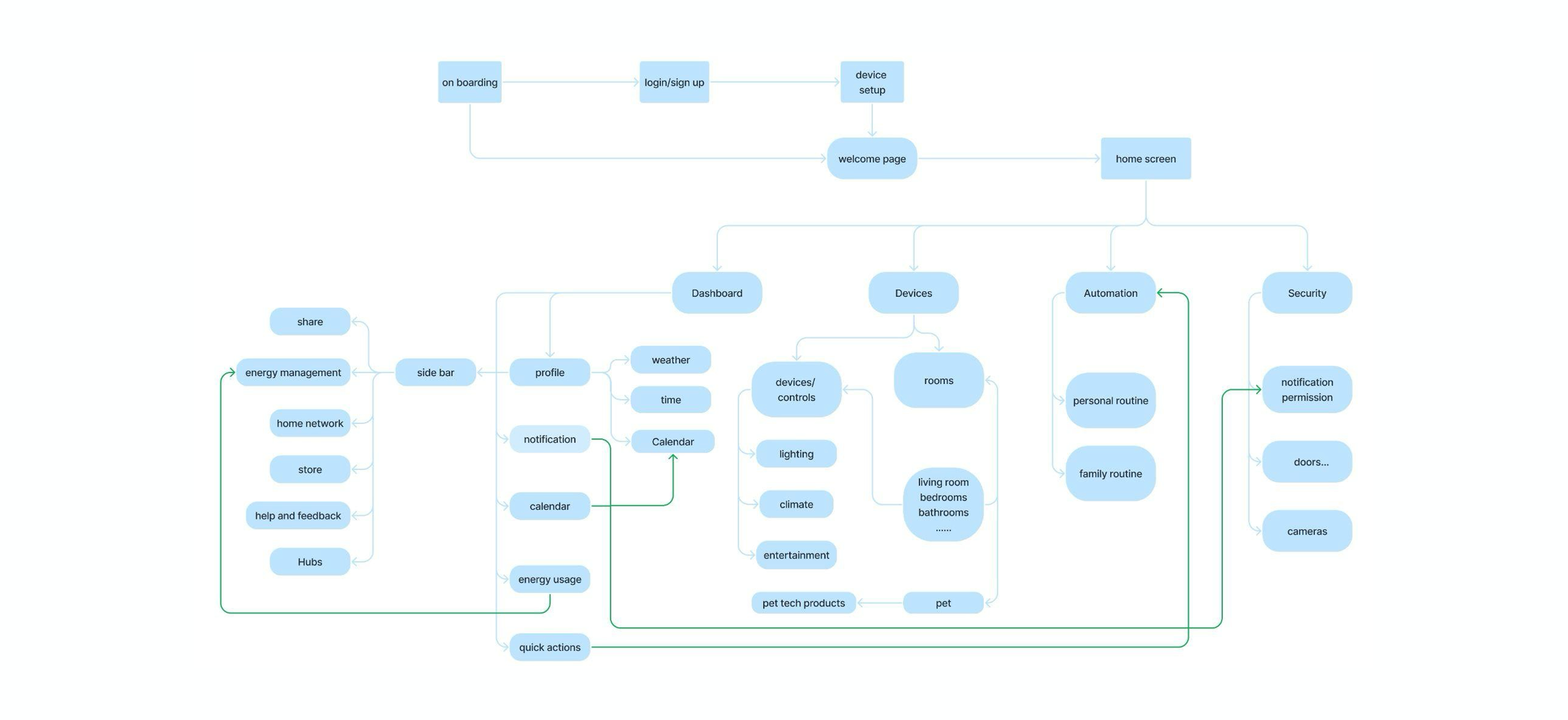 Smart home app concept designed for small families with kids and pets, focusing on user experience to ensure that all family members can navigate with ease. The functionalities in the app are tailored towards the specific needs of the target users.